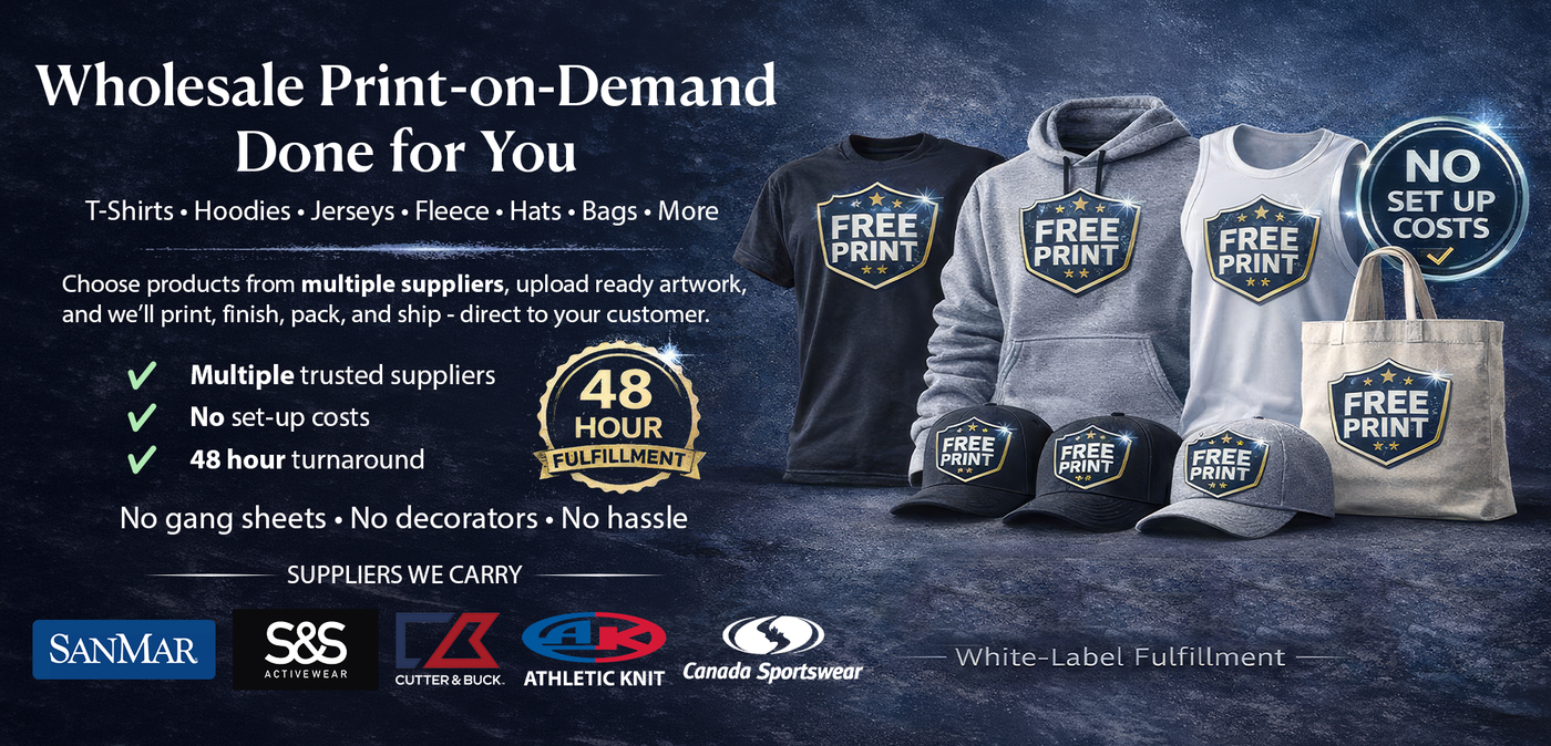 We're always adding the best apparel brands so you can offer premium products with confidence. Choose from trusted names in retail, corporate, and teamwear - and let us handle the printing and fulfillment.